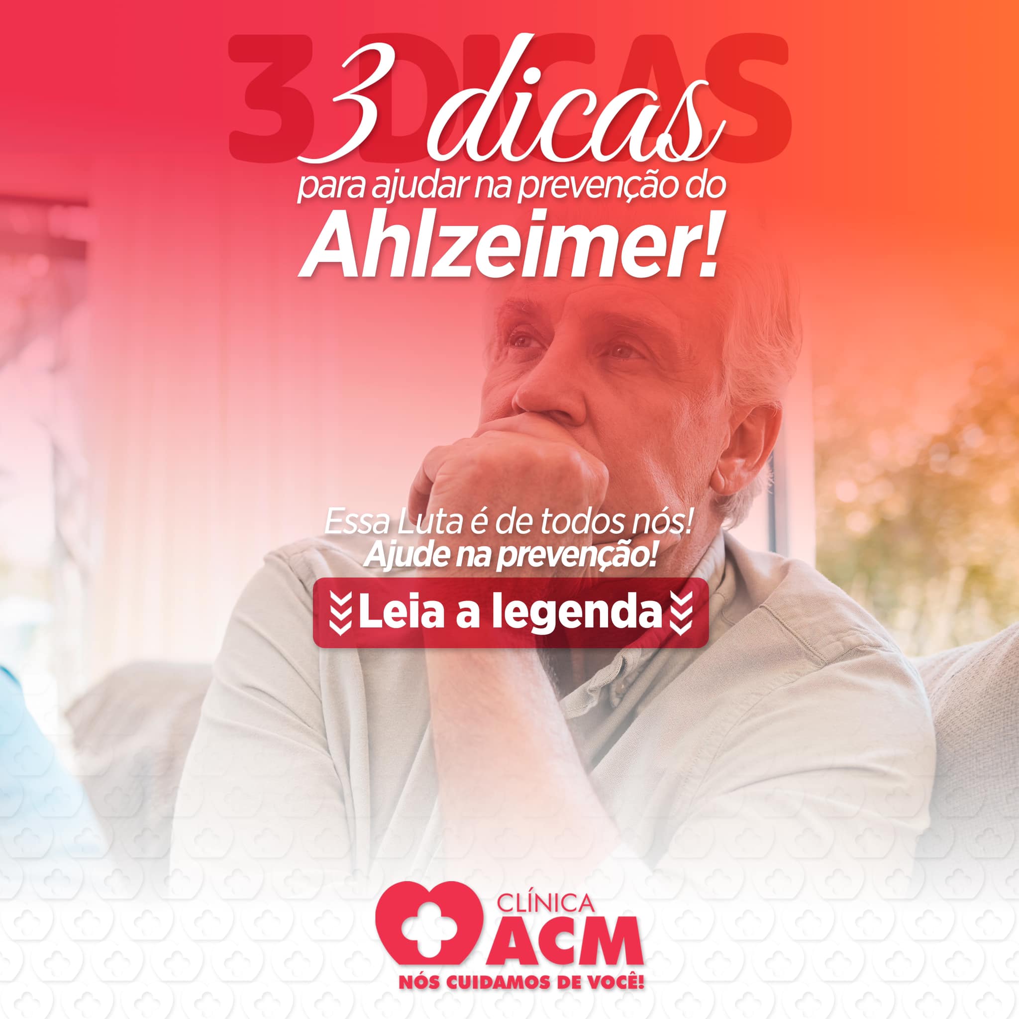 Confira 3 dicas para ajudar na prevenção do Alzheimer: • Atividades físicas: • Dieta nutritiva: • Mantenha a mente ativa: O Alzheimer é um transtorno neurodegenerativo progressivo e fatal que se manifesta pela deterioração cognitiva e da memória. Quem conhece alguém que enfrentou ou enfrenta a doença, entende a importância da conscientização e melhora de hábitos em prol de um futuro melhor. Reduza as suas chances, comece hoje.